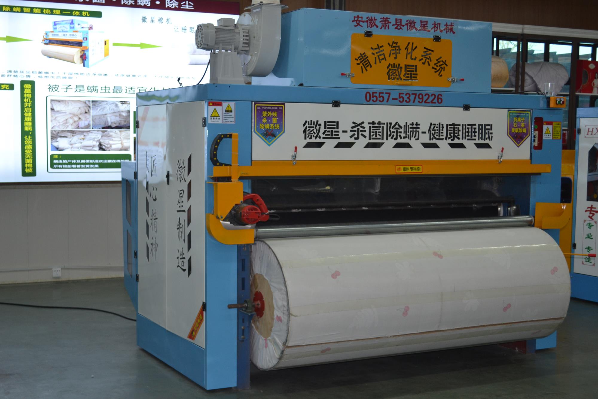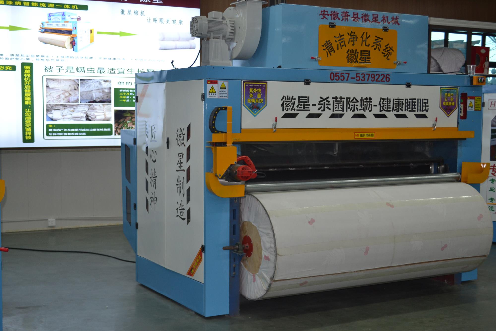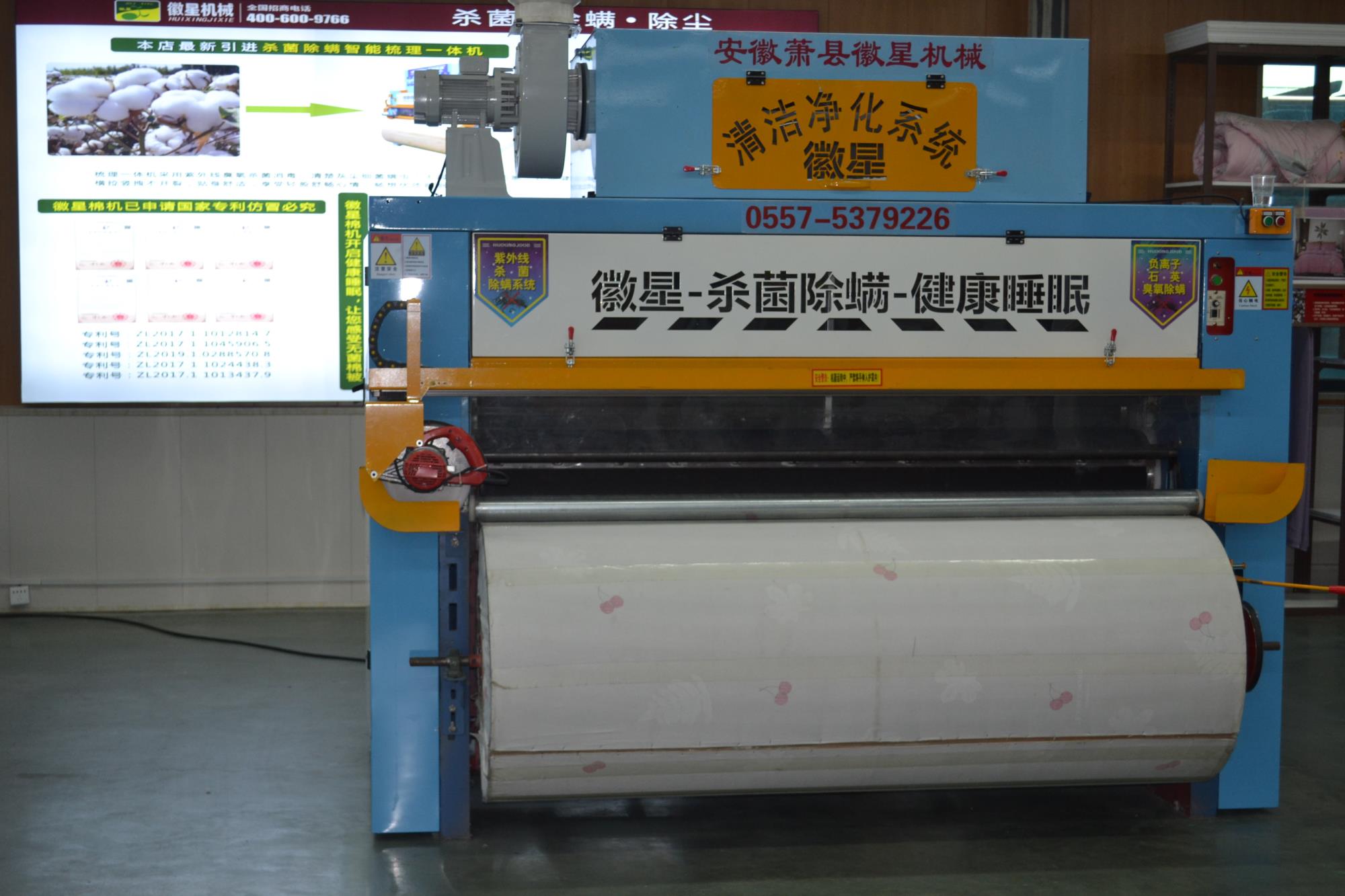 產(chǎn)品簡介:全自動彈花機是徽星彈花機的專利產(chǎn)品梳棉花機器,,一次成型全自動梳棉花機器,寬度任意調(diào)節(jié),大小被子任意做,而且是封閉吸塵梳棉機,可用照明電,3千瓦,非常適合沒有三相電的客戶朋友。