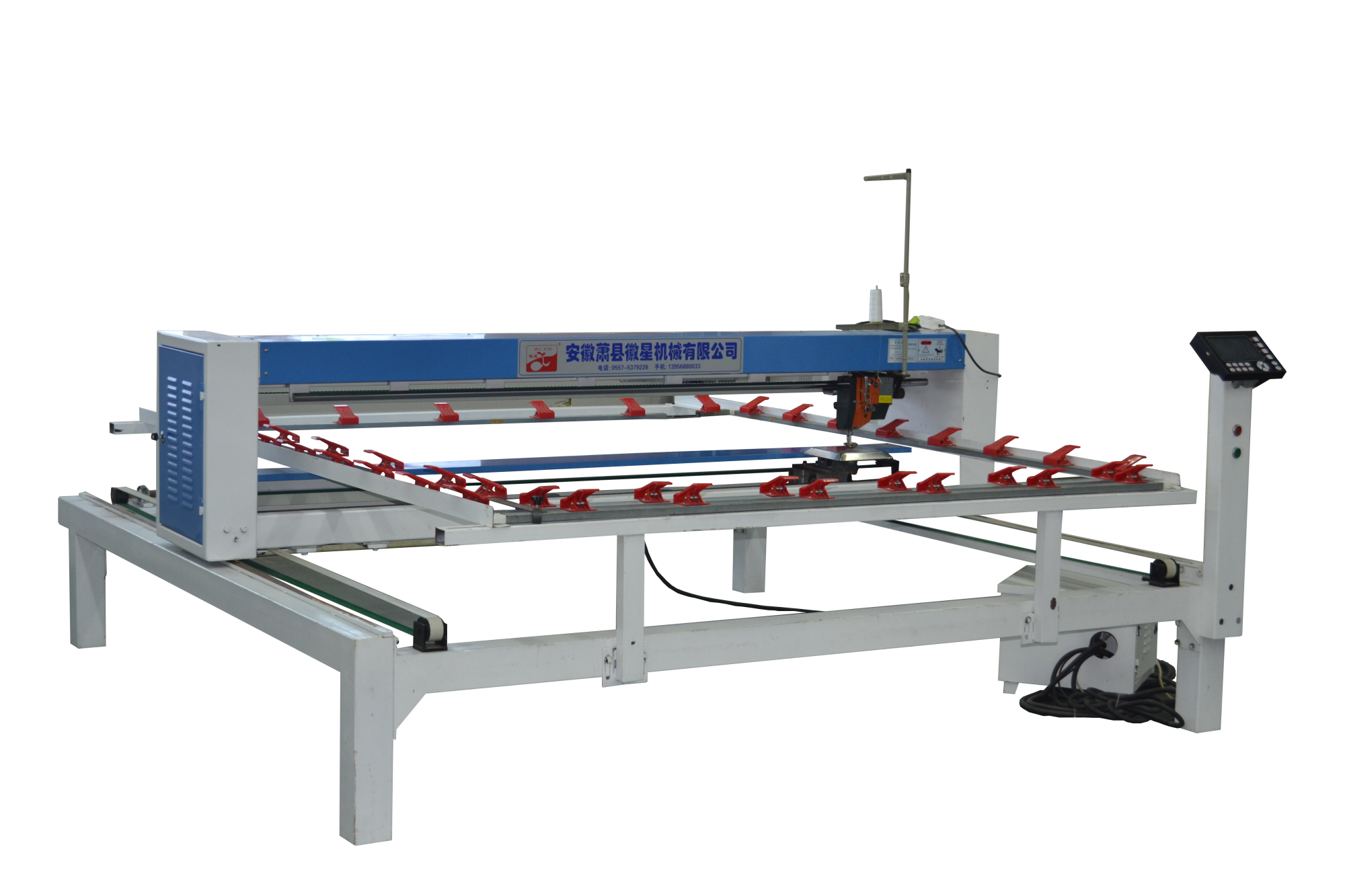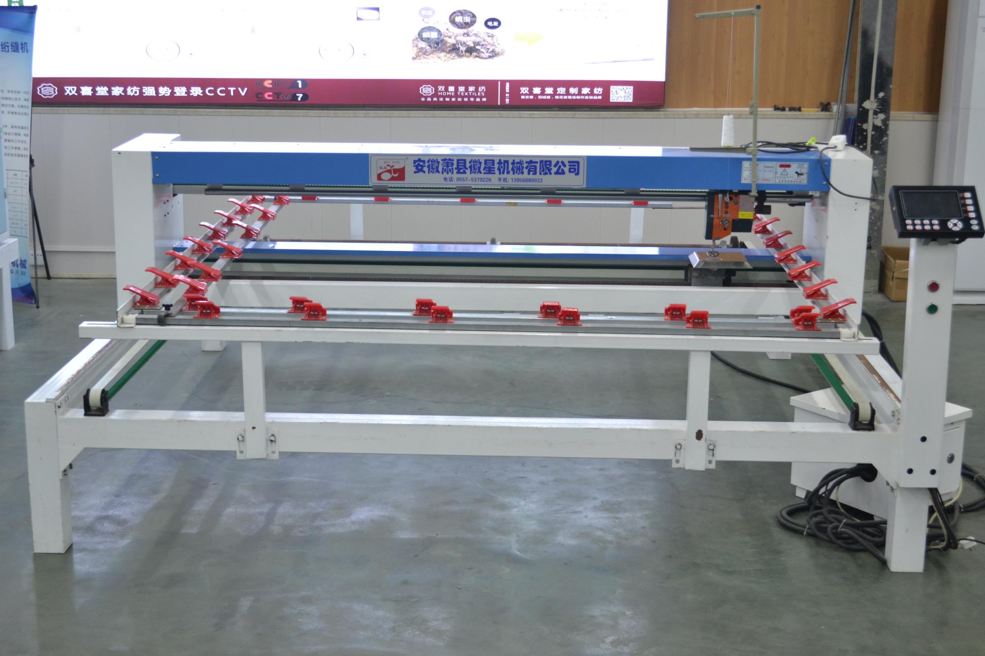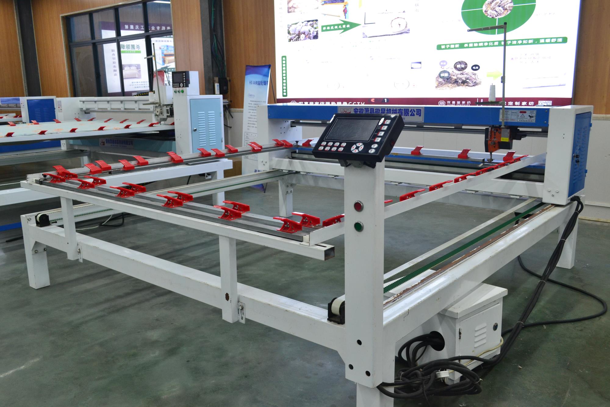 配備新一代絎縫機專用電腦,內部實時檢測,確保不拉壞被子;LED高亮度工作燈,夜間作業(yè)穿線更加安全方便;